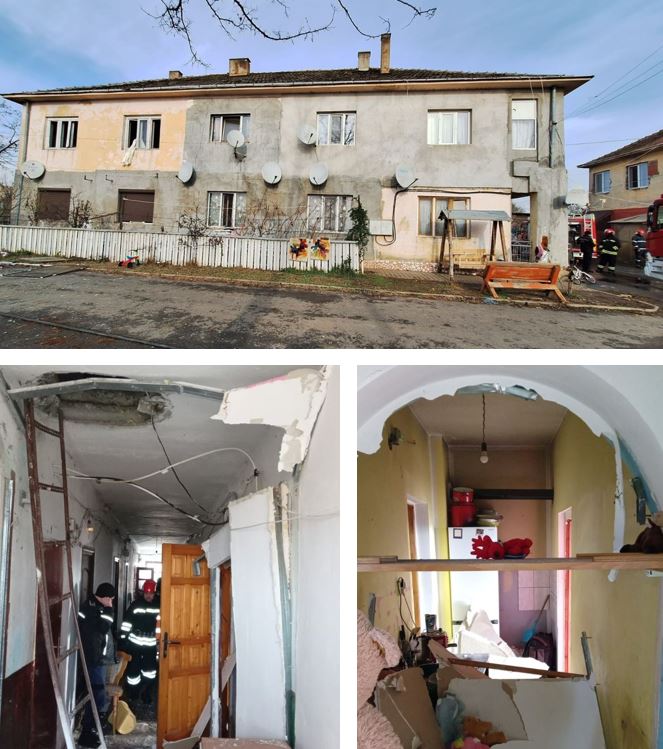 ”În data de 08.12.2023, la ora 11:56, am fost anunțați prin apel SNUAU 112 despre o explozie de butelie produsă la etajul 1 al unui imobil situat pe strada Industriilor, în localitatea Giarmata. A fost alertat de urgență Detașamentul 1 de Pompieri Timișoara și la fața locului s-au deplasat trei autospeciale de stingere, o autoscară mecanică, trei echipaje SMURD, dintre care, unul cu medic, o autospecială pentru transport personal și victime multiple, două ambulanțe SAJ, dintre care, una cu medic și un microbuz de transport persoane din cadrul Detașamentului 2 Timișoara. În sprijin intervin pompierii voluntari ai comunei Giarmata. Facem precizarea ca explozia nu a fost urmată de incendiu. În urma evenimentului, 45 persoane s-au autoevacuat, rezultând patru victime (2 adulți și doi minori, din apartamentul în cauză)”, transmite ISU Timiș.