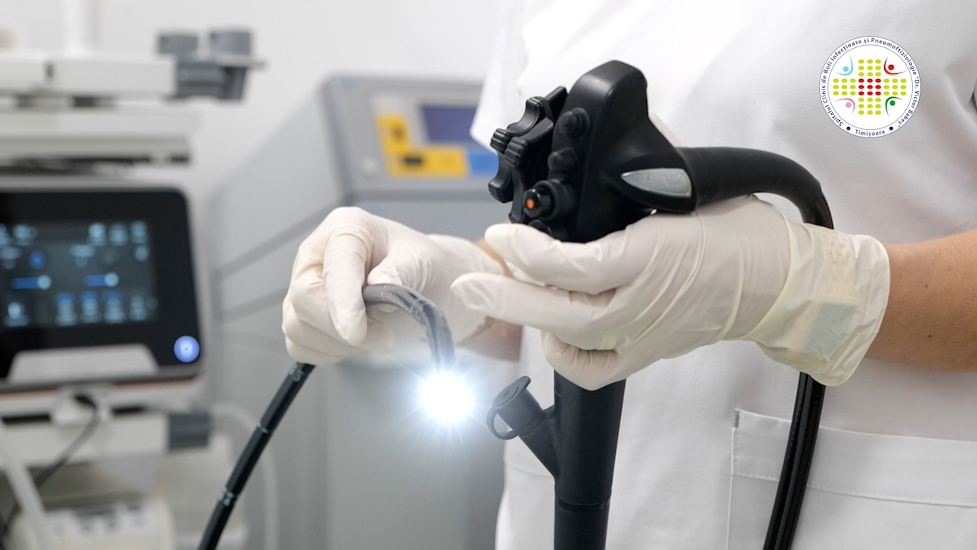 „Gastroscopul este un tub subțire, flexibil, prevăzut cu o cameră video în capăt. Acesta se introduce prin cavitatea bucală, se trece de sfincterul esofagian superior, apoi prin esofag, sfincterul esofagian inferior, stomac și prima porțiune de intestin subțire, bulbul duodenal, pana în duoden. În timp real se transmit imagini pe un monitor, permițând evaluarea mucoaselor digestive. Dacă se observă ulcere sau formațiuni tumorale, se pot preleva biopsii pentru un diagnostic anatomopatologic de certitudine. De asemenea, se pot preleva biopsii pentru testare rapidă Helicobacter Pylori. În cazul în care se suspicionează un cancer gastric, direcționăm pacientul către o evaluare imagistică, care se poate face tot în cadrul Spitalului Victor Babeș”, completează Diana Nicoleta Popițiu.