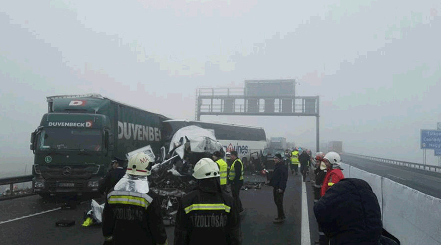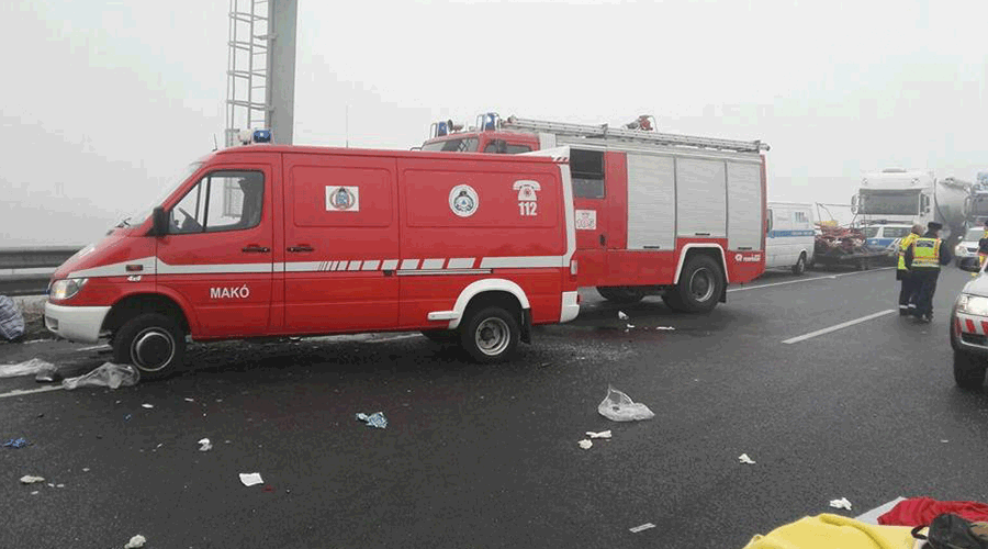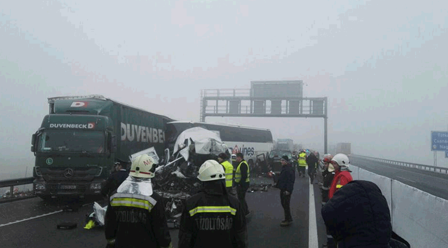 “Inspectoratul General pentru Situații de Urgență a alertat ISU Timiș pentru a interveni, în sprijinul autorităților ungare, ca urmare a accidentului rutier produs la 2 km de Nădlac, în sensul de intrare spre România, în care au fost implicate mai multe mașini, printre care și un autocar cu pasageri români.Pentru a interveni la misiunile de salvare și acordare a asistenței medicale de urgență, la locul evenimentului au fost trimise două autospeciale pentru transport personal și victime multiple (ATPVM) și o ambulanță de terapie intensivă SMURD (UTIM) din cadrul ISU Timiș. La nivelul ISU Timiș este încheiat un protocol de colaborare cu serviciile de urgență din Ungaria, intervenția comună a structurilor din cele două țări fiind realizată conform procedurilor operaționale stabilite. Acțiunile salvatorilor se derulează în condiții dificile, având în vedere condițiile meteorologice de ceață densă și vizibilitate redusă”, au transmis cei de la ISU Banat
