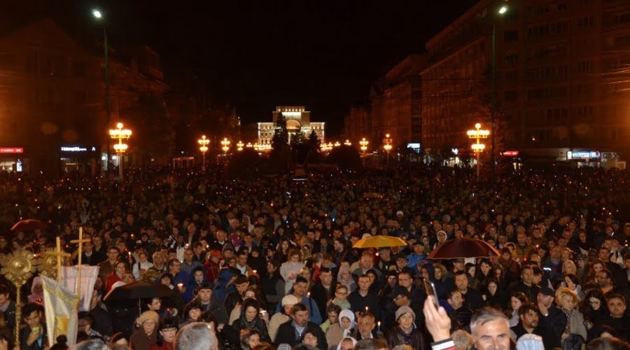 Astfel, la miezul nopţii, preoții au ieșit din biserică şi au chemat credincioşii cu îndemnul „Veniţi de luaţi Lumină!”.