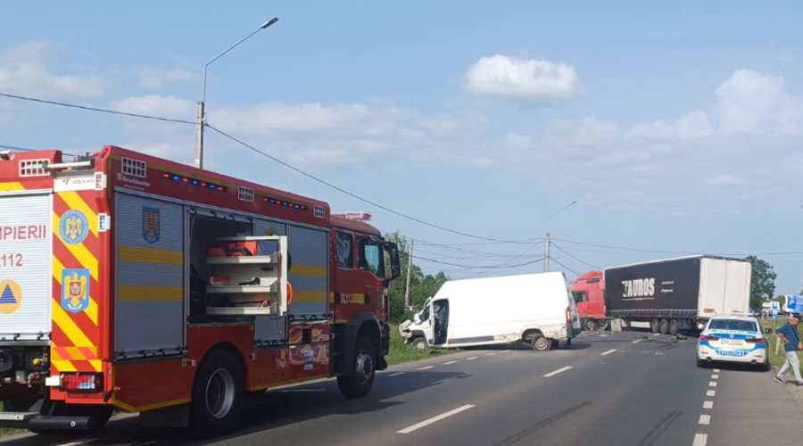 Impact violent, aproape de Timişoara! Traficul rutier este blocat după ce un tir, două microbuze şi o maşină au fost implicate într-un accident grav