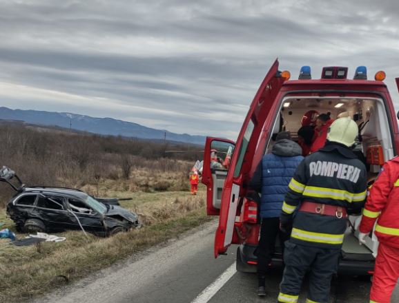 Impact violent între două maşini! A fost solicitat şi elicopterul SMURD! Trei persoane, între care doi copii, au ajuns la spital