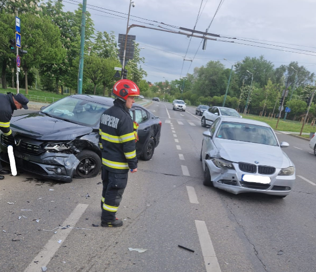 Impact violent, între două mașini, în zona centrală a Timișoarei! Un bărbat a ajuns la spital
