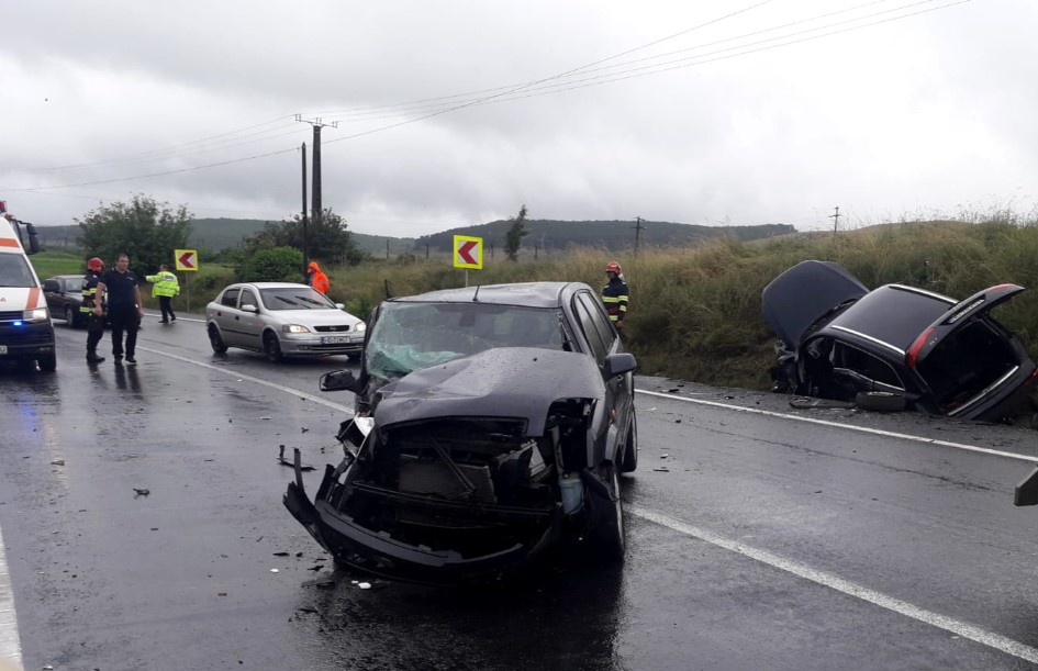 Impact violent între două mașini, pe o șosea din vestul țării! Unul dintre autoturisme a fost proiectat în afara carosabilului