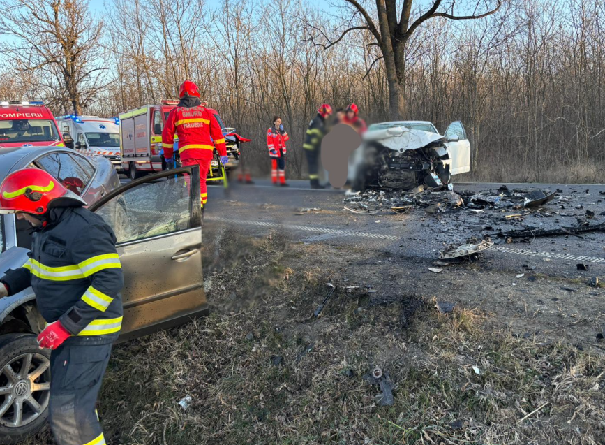 Mobilizare de forțe, în această dimineață, pe o șosea din vestul țării, după un accident rutier.