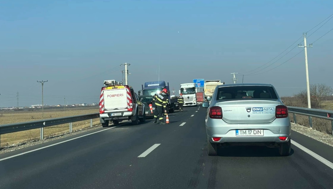 Accident rutier grav, pe centura comunei Giroc, unde șoferul unei autoutilitare a pătruns pe contrasens și a intrat în coliziune cu două mașini care circulau regulamentar.