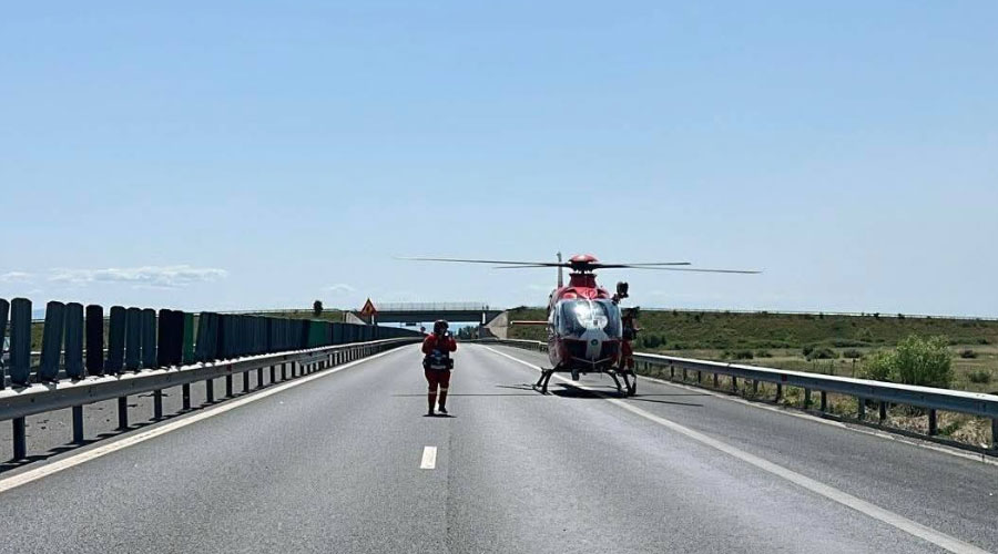 Impact violent pe autostradă, aproape de Timișoara! Au fost implicate un tir, un microbuz de pasageri și o mașină. A intervenit elicopterul SMURD