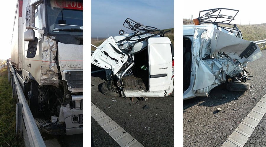 Impact violent pe autostradă! Un tir a izbit în plin, o autoutilitară