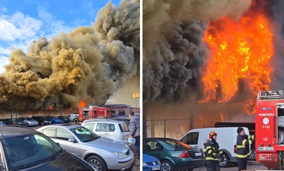 Din cauza fumului dens, pentru protecția populației a fost transmis mesajul RO-Alert.