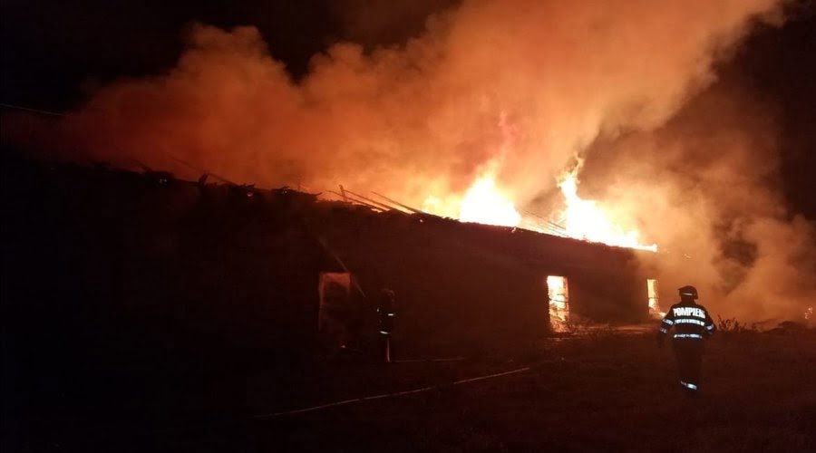 Incendiu de proporții în miez de noapte! Patru ore s-au luptat pompierii cu flăcările ce au cuprins două case