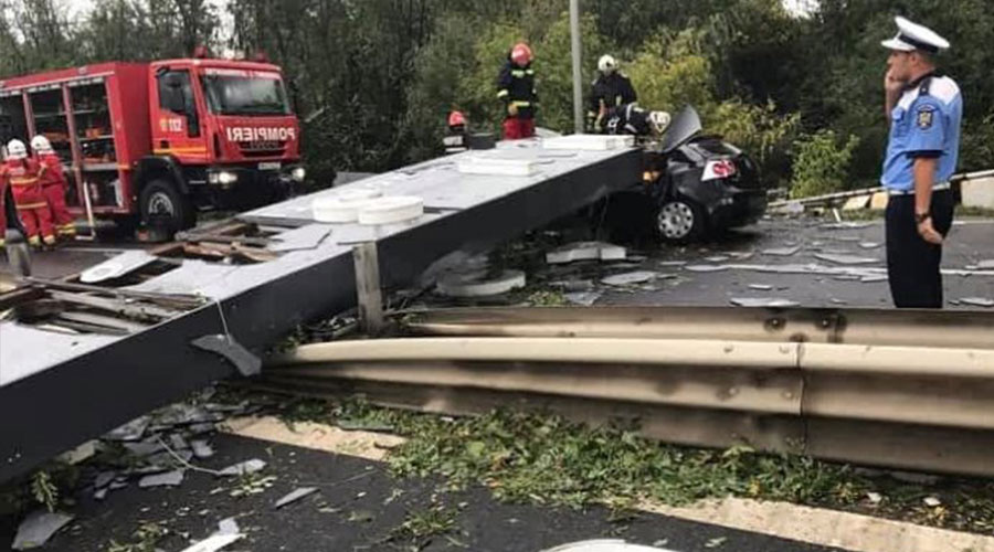 Panoul uriaş s-a prăbuşit peste maşina în care era tânărul de 24 de ani care a murit p eloc.