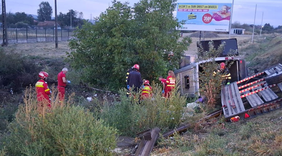 Deocamdată nu se știe cum s-a întâmplat totul, însă autoutilitara a ieșit de pe șosea și s-a răsturnat pe marginea drumului din Săcădat, județul Bihor.