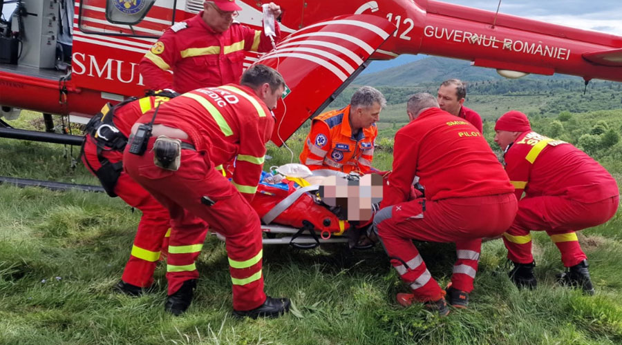 Rănile suferite de bărbatul de 57 de ani sunt unele grave, însă norocul lui a fost că salvatorii au ajunt ntr-un timp foarte scurt la el.