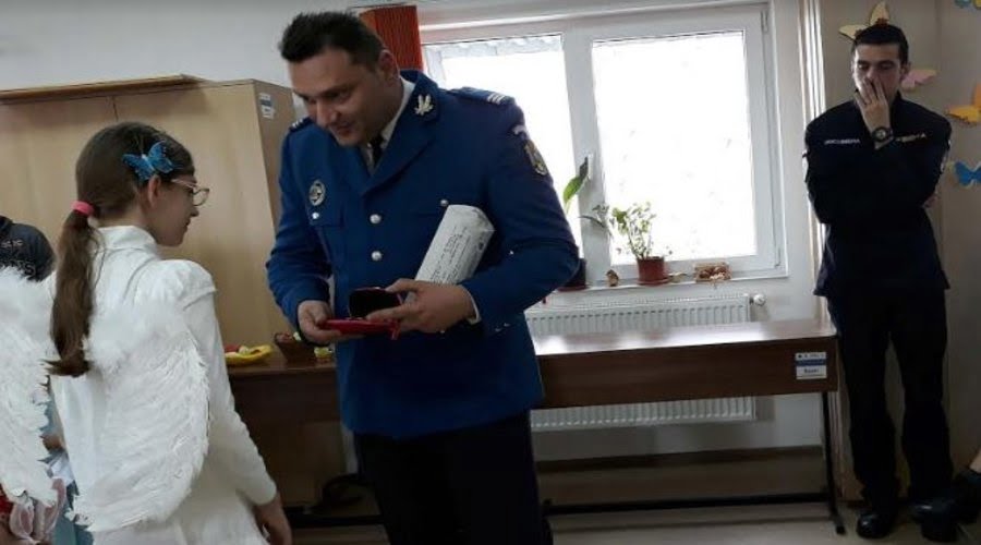 Astfel, jandarmii au ajuns și la Maria, o fetiță în vârstă de 12 ani, care a primit, drept cadou, o pereche de ochelari de vedere, de care avea mare nevoie, iar un bunic, ce îngrijește trei nepoți și care trăiește la periferia orașului în condiții improprii, a primit alimente.