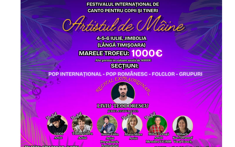 Jimbolia găzduiește Festivalul de Canto „Artistul de Mâine”! Vor participa aproape 200 de concurenți din întreaga țară