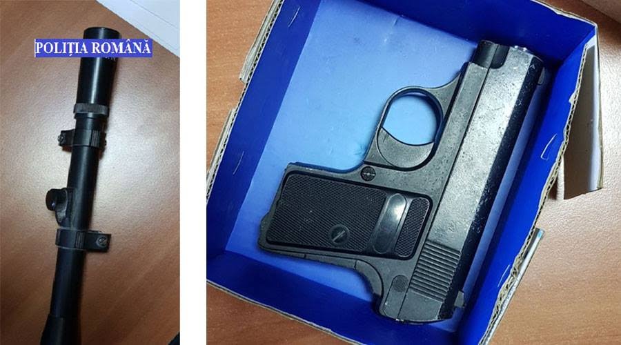 În locuințele celor doi, în vârstă de 29, respectiv 32 de ani, polițiștii au găsit un adevărat arsenal, și anume un pistol, o armă tip pușcă cu aer comprimat și muniția aferentă, o lunetă de armă și o dronă.