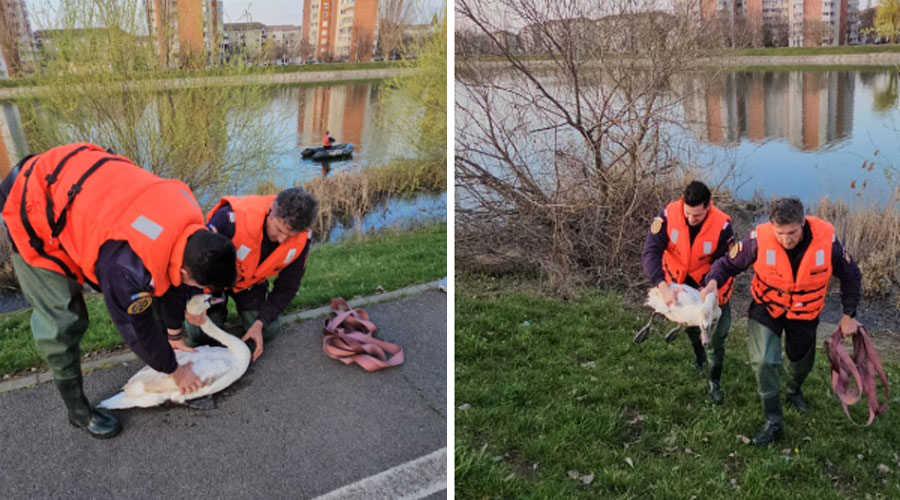 La fața locului a ajuns un echipaj de pompieri, care a găsit lebăda blocată în stuf. Unul dintre pompieri a fost nevoit să iasă cu barca, în larg, pentru recuperarea sa.