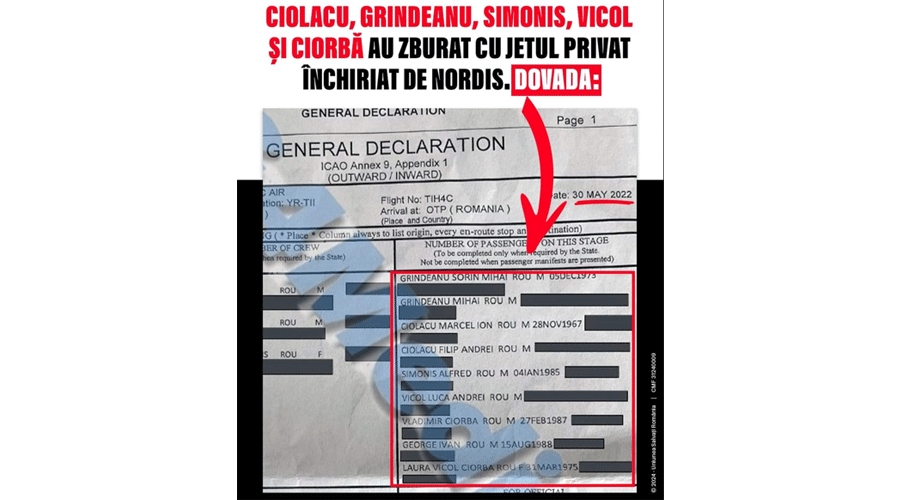Documentul de zbor este și o dovadă pentru complicitatea PSD la cea mai mare fraudă imobiliară din ultimii 34 de ani din România, afacerea Nordis.