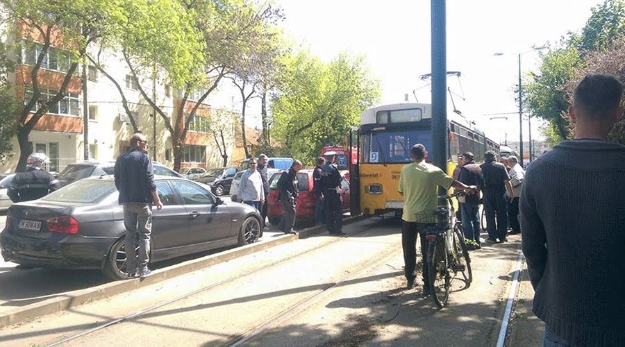Aici un bărbat de aproximativ 30 de ani a amenințat că se sinucide aruncându-se de pe … o stație de tramvai.