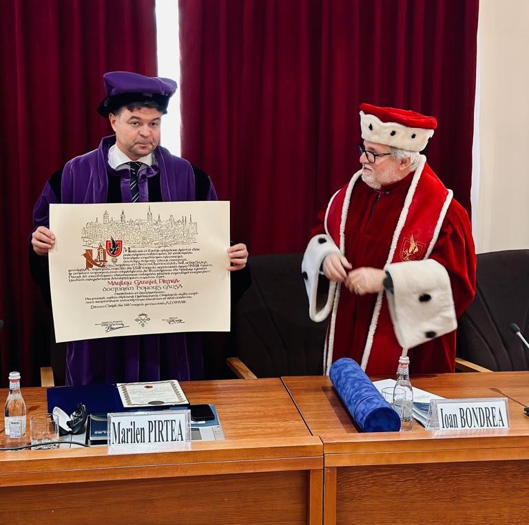 Acordarea acestui titlu din partea Universității „Lucian Blaga” din Sibiu este deopotrivă o recunoaștere a consistentului aport științific în domeniul economic, dar și a devotamentului profesorului universitar doctor Marilen Gabriel Pirtea față de comunitatea academică a ULBS.