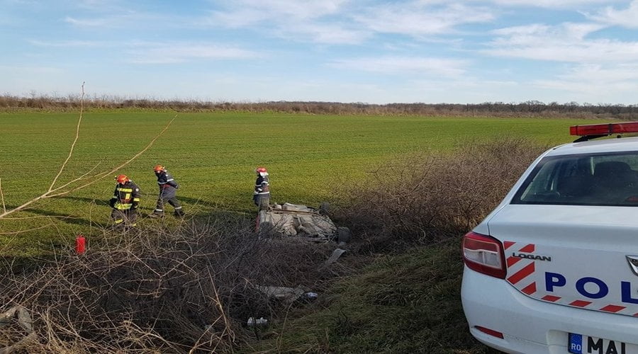 Se pare că şoferul a pierdut controlul volanului, a ieşit de pe carosabil şi s-a răsturnat.