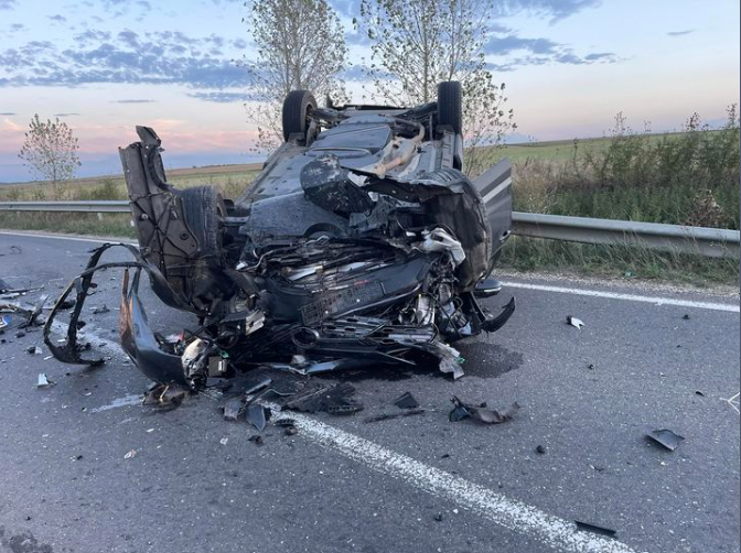 Mașină cu roțile în sus, pe mijlocul drumului, după un impact violent! Ce a ieșit la iveală în urma accidentului?
