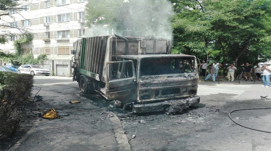 Mașină de gunoi, făcută scrum la Timișoara!
