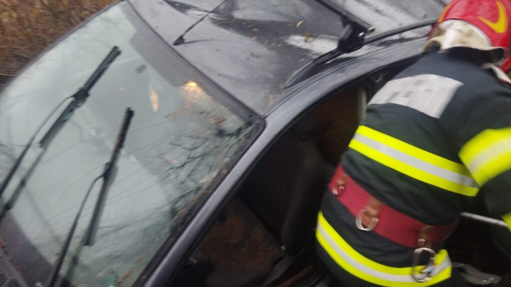 În autoturism erau trei persoane, iar o femeie de 26 de ani, pasageră, a rămas blocată între fiare și a fost nevoie de intervenția pompierilor de la descarcerare.