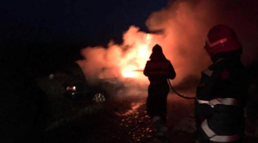 Maşină în flăcări! Ce a putut să facă un pompier aflat în timpul liber?