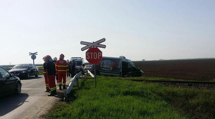 Microbuz spulberat de un tren! Accidentul s-a petrecut în apropiere de Comloşu Mare