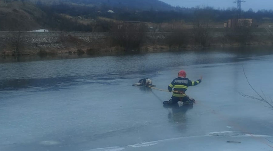Alertat de lătratul disperat al un cățel, un martor a sunat la 112 și a cerut ajutorul pompierilor, pentru a salva patrupedul care era blocat în mijlocul unui râu înghețat.
