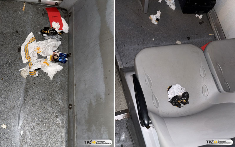 „Echipele noastre lucrează neobosit dimineața, seara și chiar noaptea, pentru a curăța tot ce rămâne în urmă în mijloacele de transport public. Alături de noua echipă de salubrizare, intervenim constant: coji de semințe aruncate pe scaune, resturi de mâncare, șervețele folosite, gume lipite, scaune tăiate sau zgâriate, ba chiar și ambalaje lăsate peste tot. Toate sunt strânse, spălate, îndepărtate și reparate cât se poate, pentru ca vehiculele să fie din nou curate și sigure pentru călători”, transmit reprezentanții STPT.