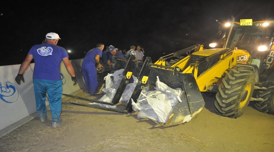 Timp de 7 ore, 180 de angajați Apele Române au supraînălțat aproape 4 km de diguri pentru a proteja astfel localitațile din vecinătate. Ceea ce a adus nou acest exercițiu a fost faptul că s-au testat sistemele de iluminat aflate în dotarea echipelor de intervenție. S-au utilizat cele mai moderne soluții de apărare precum; hidrobaraj, aerobaraj, baraj din aluminiu și baraj tip aqua stop. De asemenea au fost utilizate echipamente moderne si performante de umplut și transportat sacii cu nisip, iar noutatea exercițiului a fost sistemele de iluminat atât cele portabile, cât și cele de tip turn. S-a intervenit cu 6 autoutilitare, 4 buldoexcavatoare, o masina de umplut saci, un trailer, 4 grupuri electrogene pentru iluminat cu anexe, 25 de reflectoare, doua turnuri pentru iluminat cu inaltimea de 9 m, respectiv 12 m.
