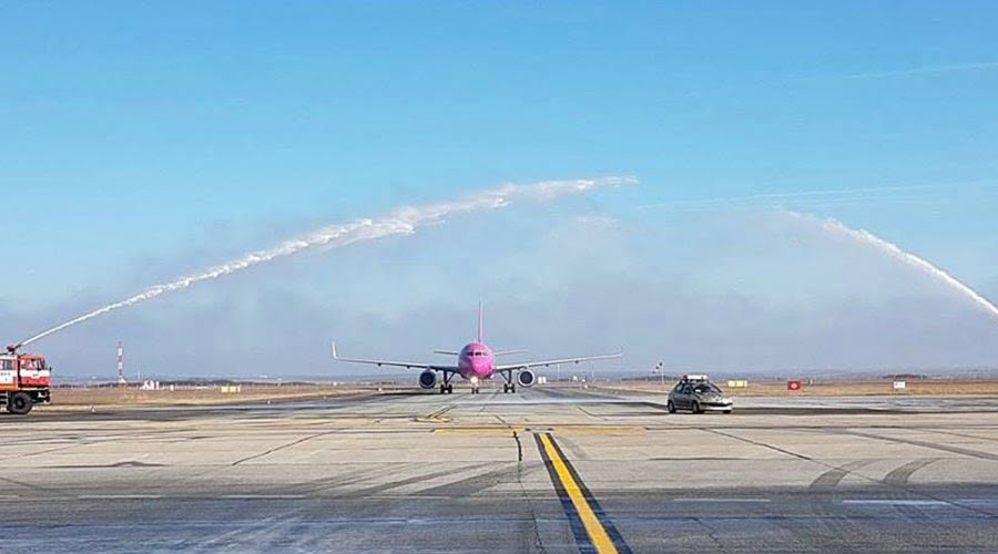 Moment INEDIT, pe Aeroportul din Timișoara! Un avion a fost întâmpinat cu o boltă de apă