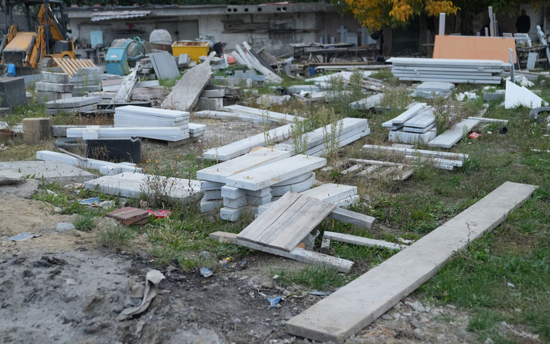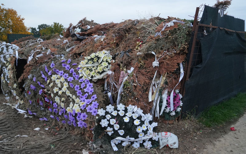 Grămezi cu moloz, resturi vegetale, pungi din plastic, coroane vechi de flori, dar și deșeuri rezultate din demolarea mormintelor, zac abandonate în cimitirul din Buziașului.