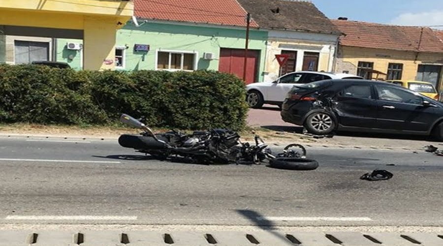 Accidentul s-a produs sâmbătă după amiază în Tinca, județul Bihor. Se pare că şoferul, de cetățenie poloneză, nu a acordat prioritate motociclistului și l-a lovit în plin.