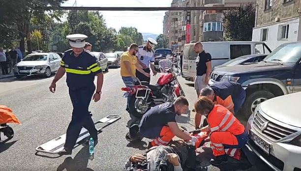 Motociclist lovit de un șofer care nu a acordat prioritate! Bărbatul a ajuns în stare gravă la spital