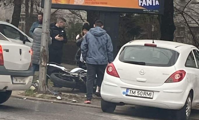 Un șofer, în vârstă de 25 de ani, a condus un autoturism pe Calea Torontalului, iar la intersecția cu strada Timiș a intrat într-o motocicletă, condusă de către un tânăr în vârstă de 20 de ani.