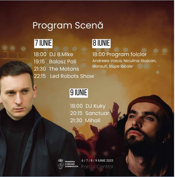 Pe scenă, la Zilele și Ruga Dumbrăviței, vor urca artiști consacrați ai muzicii populare, cât și nume importante din muzica pop și rock.