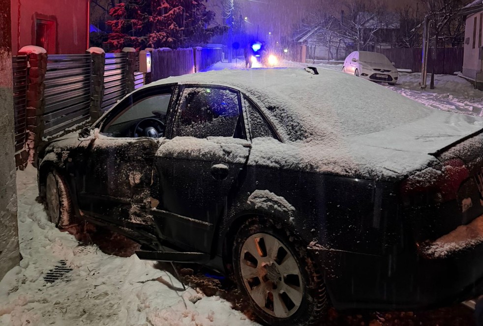 La volanul mașinii se afla însă un tânăr de 20 de ani, care, la un moment dat, a pierdut controlul volanului, a părăsit carosabilul și a intrat în coliziune cu un stâlp de pe marginea drumului.