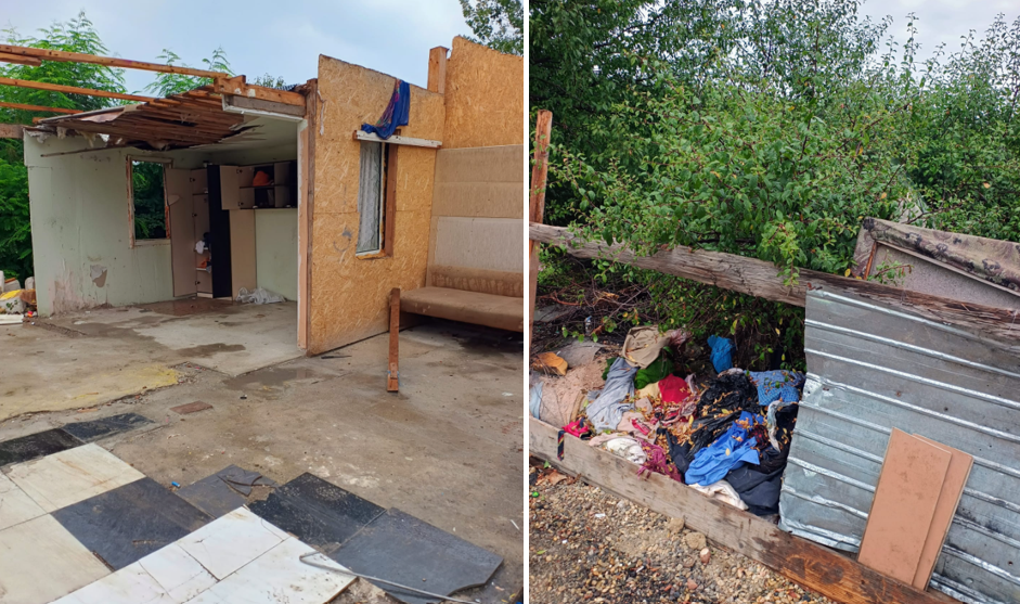 Mai exact, este vorba despre două anexe din lemn, o structură din diverse materiale și o platformă betonată, toate ridicate fără autorizație pe un teren de aproape 300 de mp, în zona intersecției străzilor Luță Ioviță și Pavel Stoica.