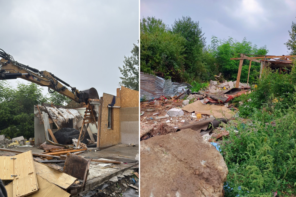 O nouă demolare, la Timișoara! Angajații Primăriei au pus la pământ mai multe construcții ilegale
