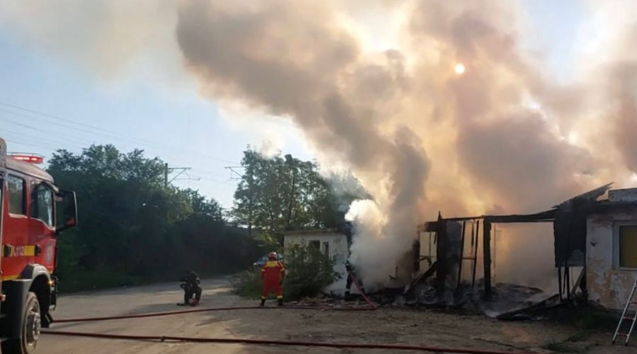 Oameni surprinși de un incendiu violent! Flăcările au pornit de la o țigară și au cuprins o clădire abandonată