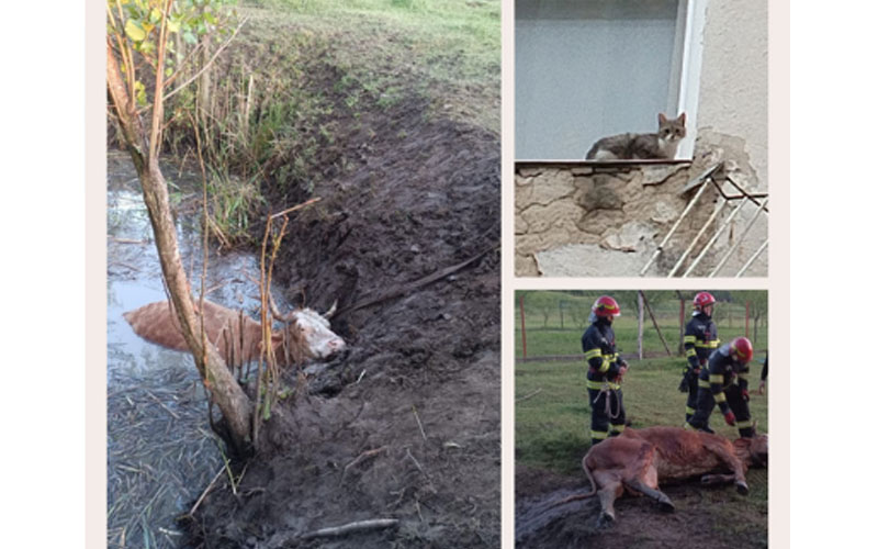Intervenții de suflet ale pompierilor bihoreni. Au salvat o vacă, dar și o pisică.
