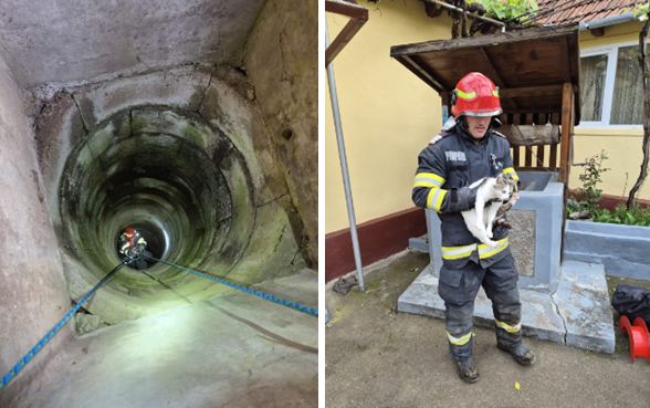 Pompierii au fost solicitați, în această dimineață, să intervină pentru salvarea unei pisici care a căzut într-o fântână adâncă de circa 10 metri.
