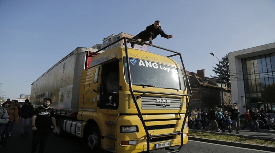 Premieră în România! TIR de 13 tone fără şofer, tras de un magician ce levitează