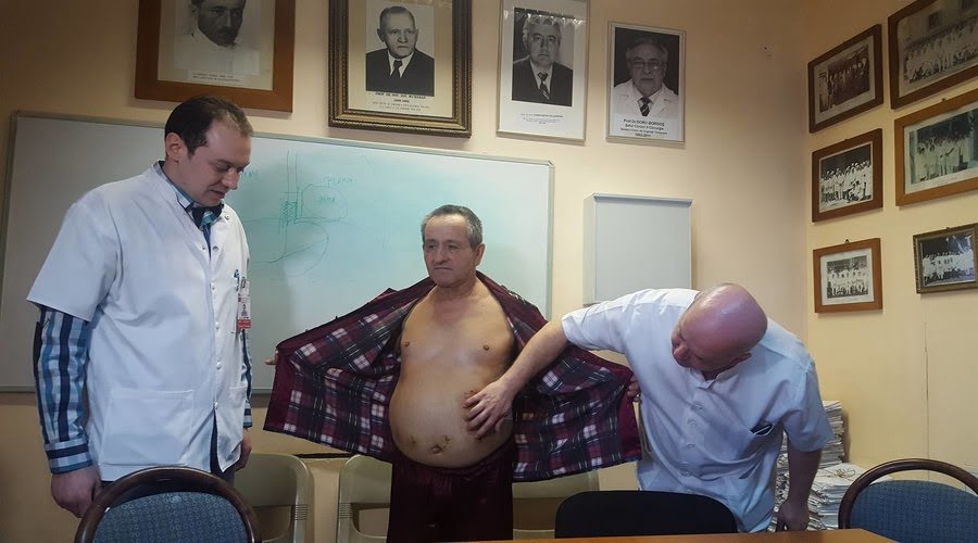 ”Mă bucur că fac parte din echipa chirurgicală în ceea ce privește abordul robotic. Domnul Gheorge a venit la spital într-una din gărzile mele și a venit cu întrebarea dacă aici se fac sau nu se fac astfel de operații, iată că se fac și se fac la un standard foarte înalt. În ceea ce privește intervenția chirurgiacală, tumora s-a îndepărtat prin secționarea stomacului și crearea unui tub gastric din marea curbură gastrică, întreruperea esofagului proximal deasupra de tumoră. Acest orificu și anume hiatosul esofagian are un diametru de aproximativ 5-6 cm, și gândiți-vă că mâna noastră are cel puțin 10-12 cm și nu are cum să intre în această zonă. Aceste brațe ale robotului sunt de 5 mm, instrumentele de lucru ajung acolo și replică manualitatea chirurgului de la control, înlătură tremurul mâinii, pentru că mâna chirurgului obosește și începe să tremure, dar instrumentul nu tremură, nu îți dă voie să faci mișcări bruște, anticipează că tu ai scăpat mâna din greșeală”, explică doctorul Dan Brebu.
