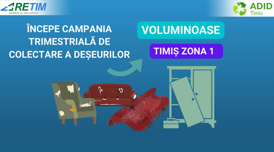 Compania RETIM împreună cu ADID Timiș organizează în perioada 02 – 31 mai 2023 o nouă campanie de colectare gratuită a deșeurilor voluminoase din zona 1 rural a judeţului Timiş.