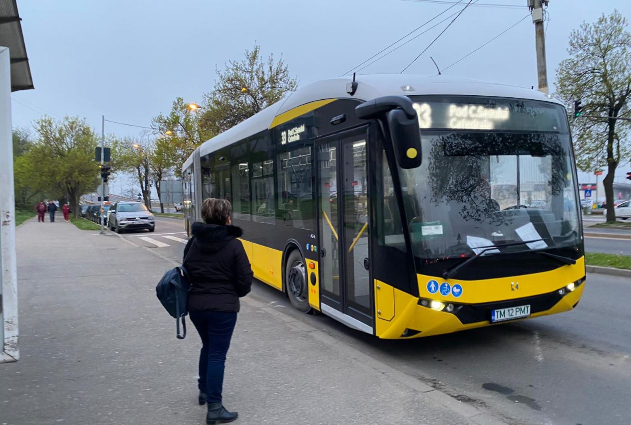 Primele două autobuze 100% electrice intră în circuitul transportului în comun din Timișoara. Cele două vehicule vor circula pe linia 33, între Calea Șagului și Catedrala Mitropolitană.