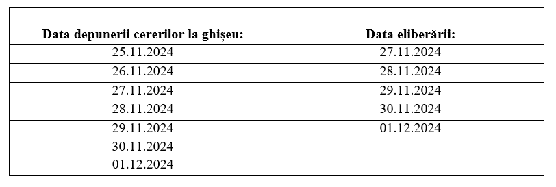 Astfel, în zilele de 30 noiembrie și 1 decembrie 2024, programul de lucru va fi următorul: